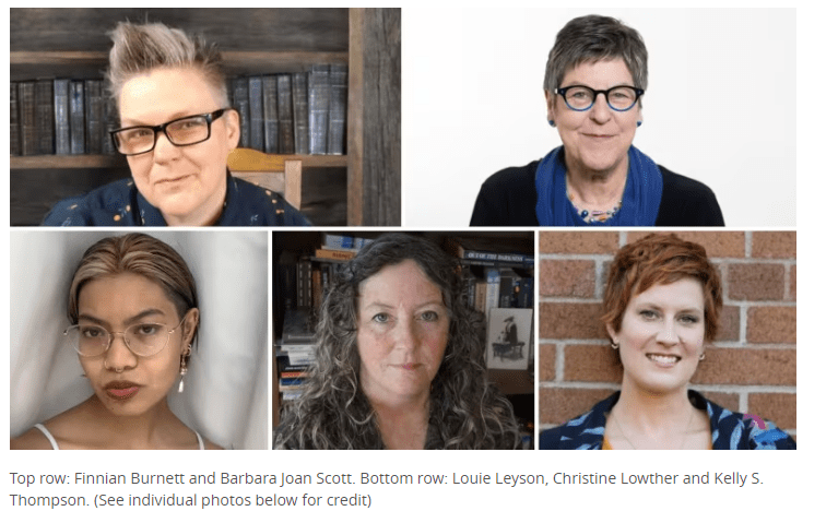 Image description: Head shots of five people who shortlisted for the CBC 2023 nonfiction prize