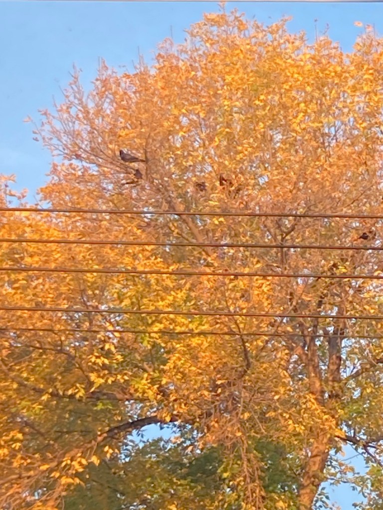 In November of 2023 I attempted to win NaNoWriMo. Never again. That month of writing almost killed my creativity and it took me months to recover. But each day I had a word count I needed to achieve and so I was always searching for ideas. One day as I looked out from my desk at my front window, I saw that the massive tree across from me was covered in crows. The tree was still alive with yellow leaves against a blue sky. The black crows cocked their heads in conversation with each other and hopped nimbly from branch to branch, ducking behind the leaves. As I looked closer I saw that on one branch a lone crow sat with white in its wings. It wasn’t a magpie, it had no iridescent blue or the long tail. It spread its wings and a band of white feathers showed for a moment across its back and through both of its wings. A chill ran through me and I couldn’t stop looking until it flew away. I wrote a children’s story that day about that crow called ‘King Crow and the River of Shining Light,’ which may or may not be published in 2027 as a picture book depending on whether or not I get the rewrite figured out. Here are my attempts at photographing my King Crow.