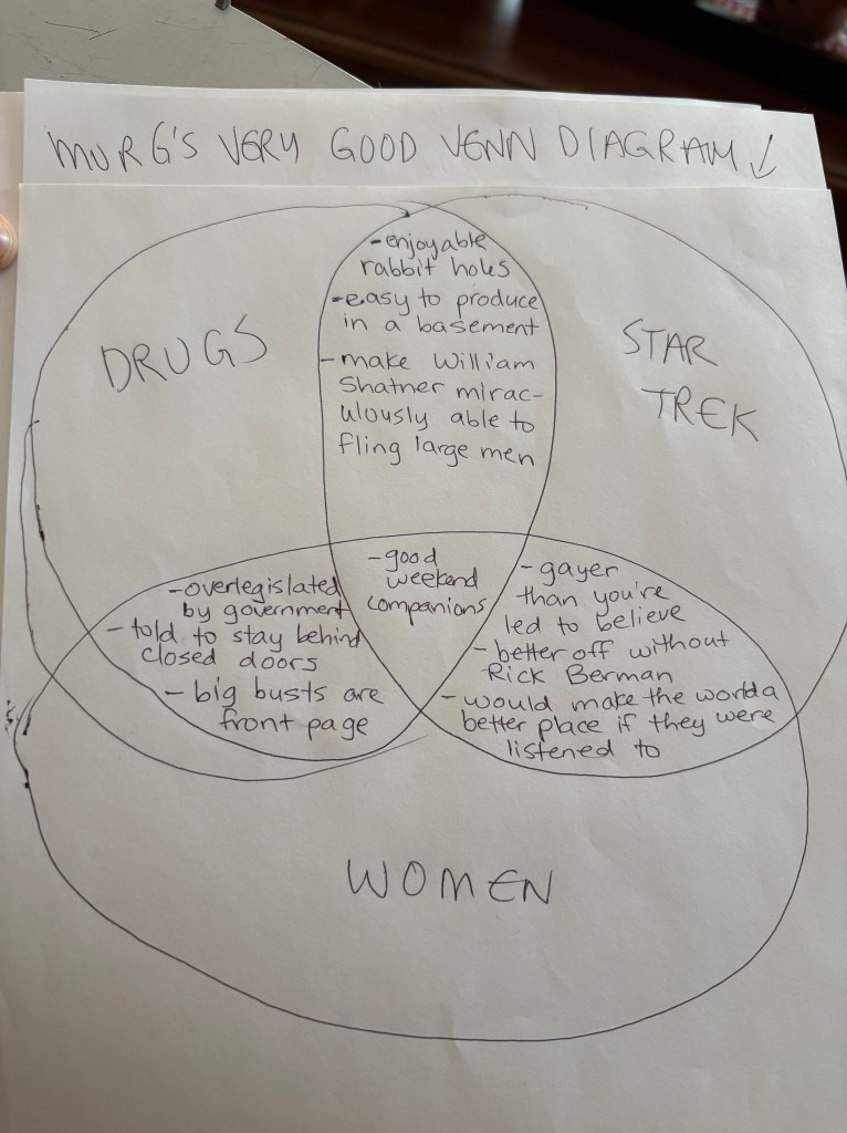 You write a lot about Star Trek, drugs, and women! Give me a Venn diagram of all three.
