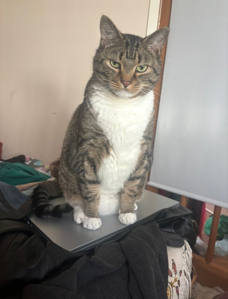 Only a bird-of-prey. But I submit here this photo of my weirdo 30-lb cat, Thomas (Smoke Signals, in case you want the reference; also one of the greatest ND characters of all time) who gives me this look when I’m planning on writing on my laptop instead of feeding him.